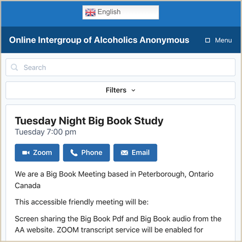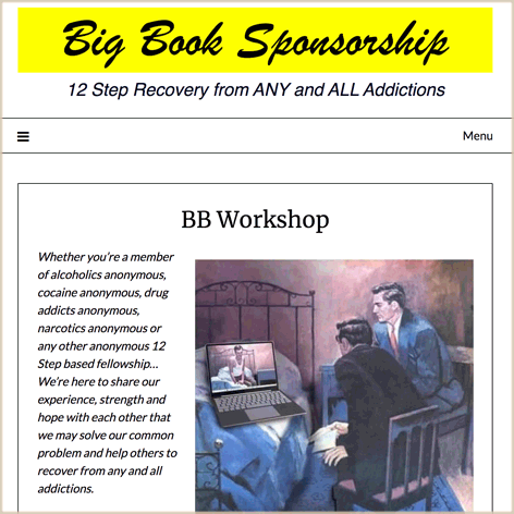 Shows people with any addiction how to recover using The Big Book of AA. It provides information about the original AA Program and gives full online access to The Big Book. It also helps connect people with Big Book sponsors who practice the original program format.