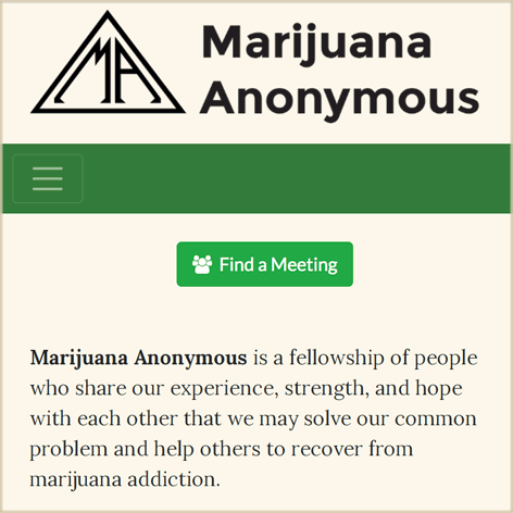 Uses the basic 12-step recovery program founded by AA. Their web site covers the 12-steps, the 12 traditions, online pamphlets on various aspects of marijuana addiction, a meeting directory by geographic area and a list of online meetings.