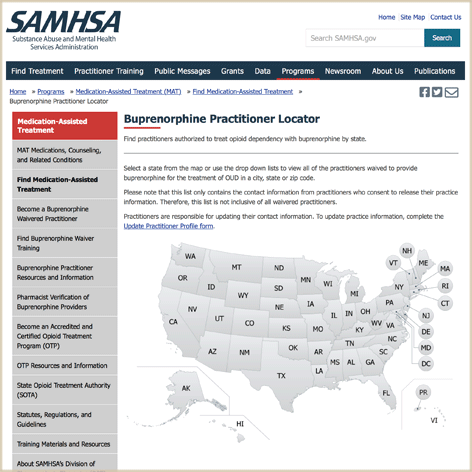 Find practitioners by state who provide treatment for opioid dependency with buprenorphine.