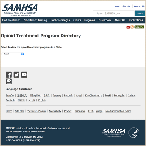 Substance Abuse and Mental Health Services Administration (SAMSHA) Treatment Facility Locator